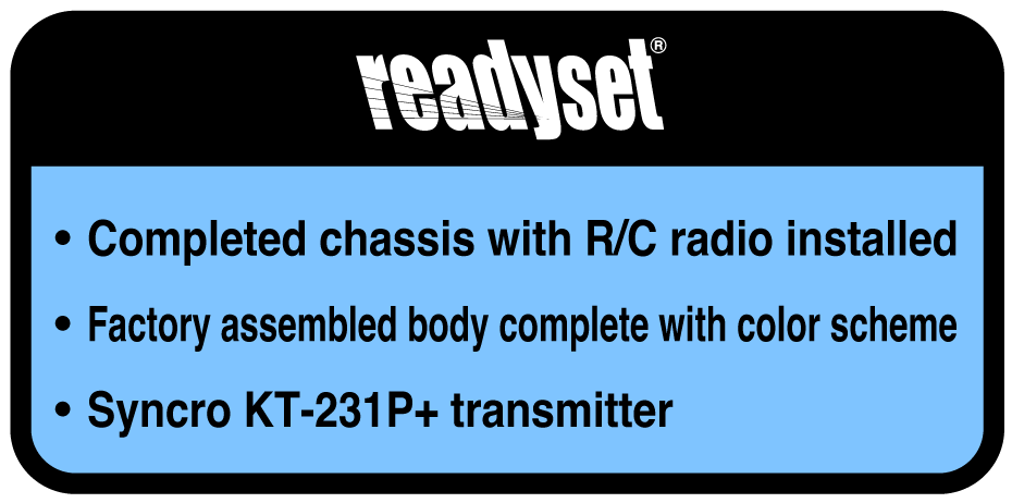 Each Readyset includes a fully assembled chassis with pre-installed R/C electronics, a factory-painted body complete with decals, and a transmitter. Just add AA batteries, a drive battery, and a charger. It’s the perfect way to jump into on-road, off-road, or drift driving—right out of the box.